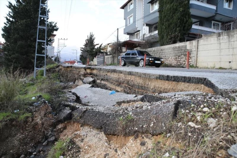 HATAY - Hatay'ın Antakya ilçesinde aşırı yağış nedeniyle bir mahalleyi ilçe merkezine bağlayan yolda çökme meydana geldi.