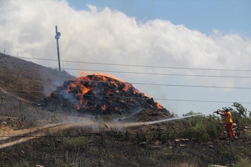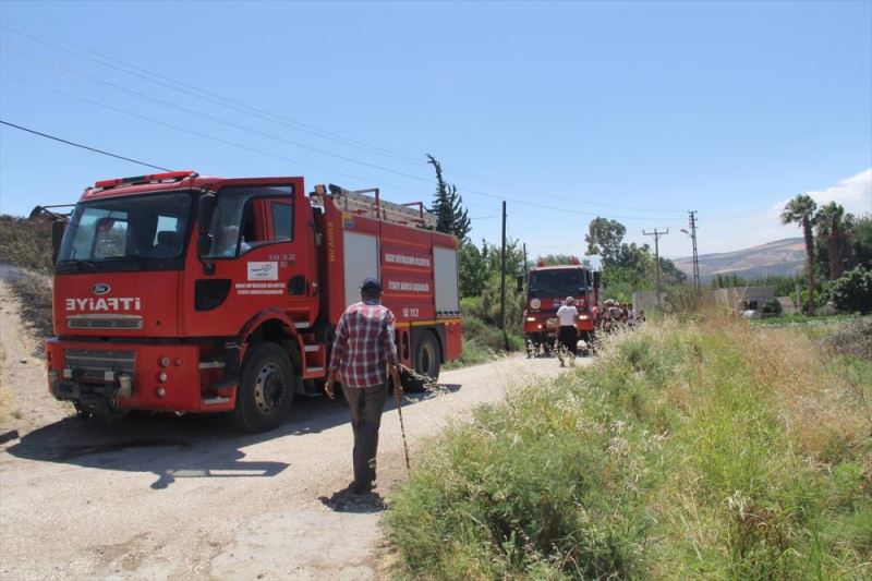 Ekiplerin müdahalesiyle kontrol altina alinan yanginda, bahçedeki agaçlar ve samanlik zarar gördü.
