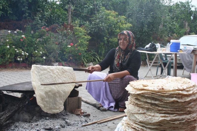 HATAY (AA) - Hatay'in Dörtyol ilçesinde kadinlar, Kurban Bayrami'nda sofralari süsleyecek yufka ekmekleri imece usulü yapiyor.