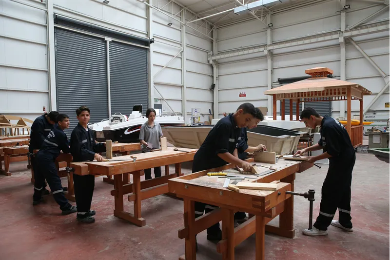 İskenderun Sefa Atakaş Denizcilik Mesleki ve Teknik Anadolu Lisesi bünyesindeki Gemicilik Ahşap Gemi Yat İnşa Atölyesi'nde 2022 yılında başlayan bot ve fiber tekne üretimi devam ediyor.