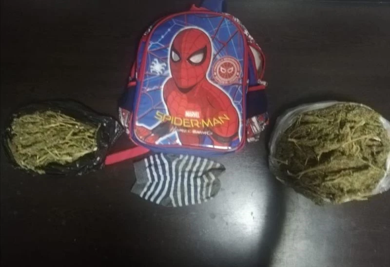Çantasında 672 gram esrar bulunan zanlı gözaltına alındı.