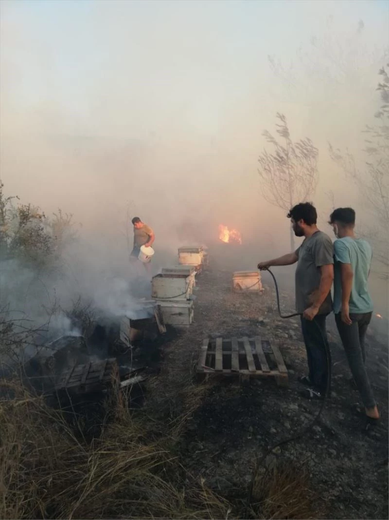 Yangın sonucu bahçede bulunan kovanlar da zarar gördü.
