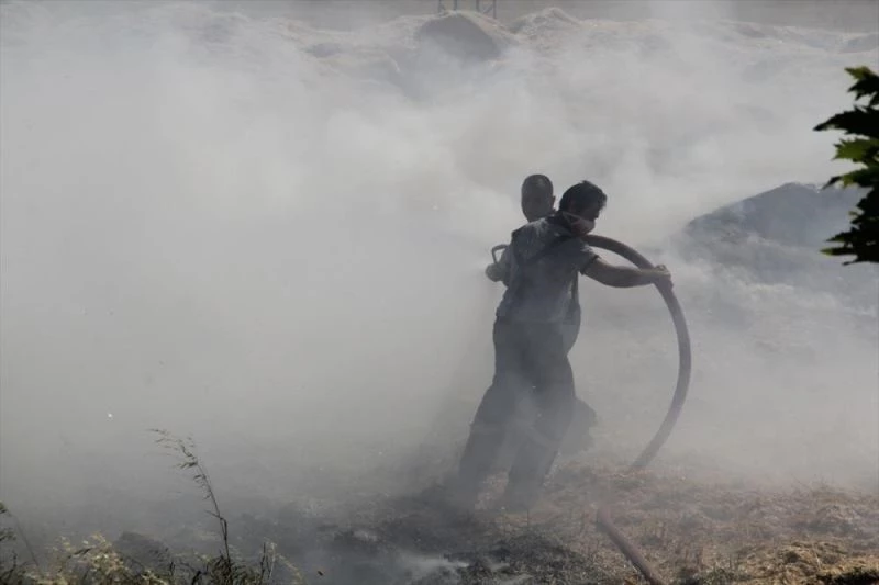 İtfaiye ekiplerinin müdahalesi sonucu kontrol altına alınan yangında, yaklaşık 10 ton saman yandı.
