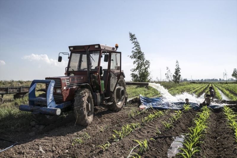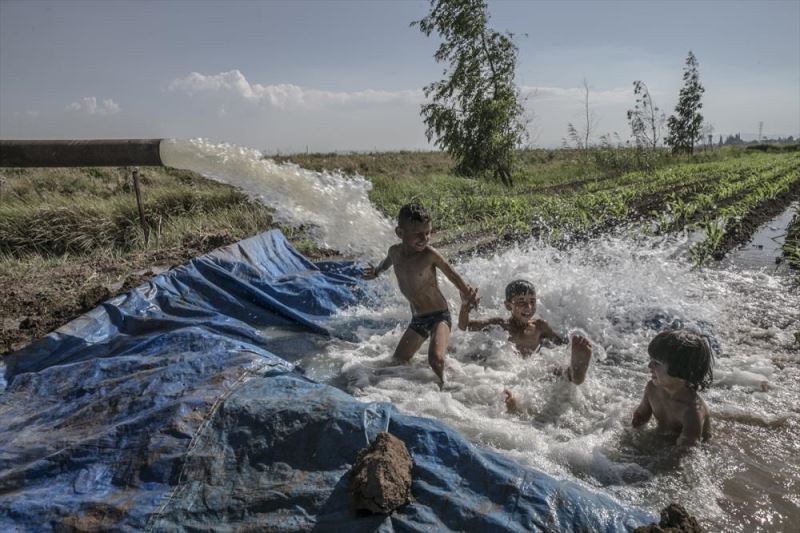 Çocuklar, mısır tarlalarında suların biriktiği yerlerde bazı alanları brandayla kapatıp kendilerine havuz yaparak serinlemeye çalıştı.