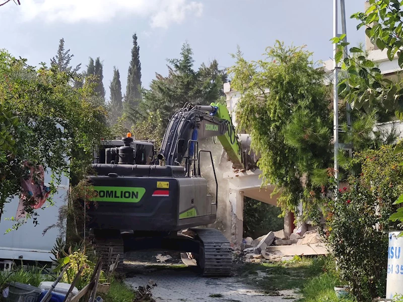 Defne ilçesinde, 6 Şubat'taki afetin ardından yıkım kararı verilen yapılarda çalışmalar devam etti.