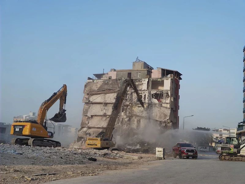 Samandağ ilçesinde, 6 Şubat'taki afetin ardından yıkım kararı verilen yapılardaki çalışmalar devam etti.