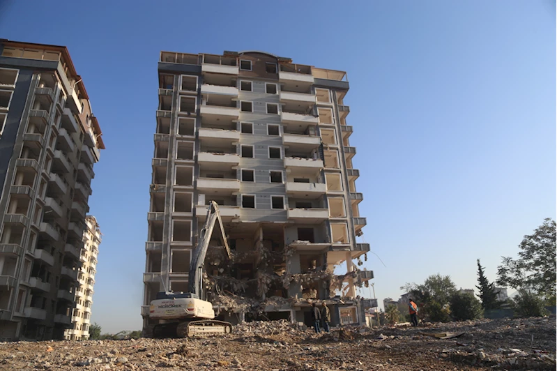 Defne ilçesinde, 6 Şubat'taki afetin ardından yıkım kararı verilen yapılarda çalışmalar devam etti.