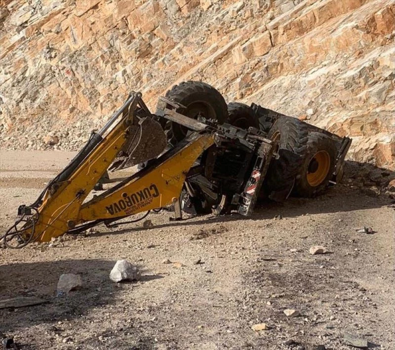 Özel şirkette çalışan Mustafa Karameryem'in (19) kullandığı kepçe, Denizgören Mahallesi'ndeki dağlık arazide uçuruma devrildi.