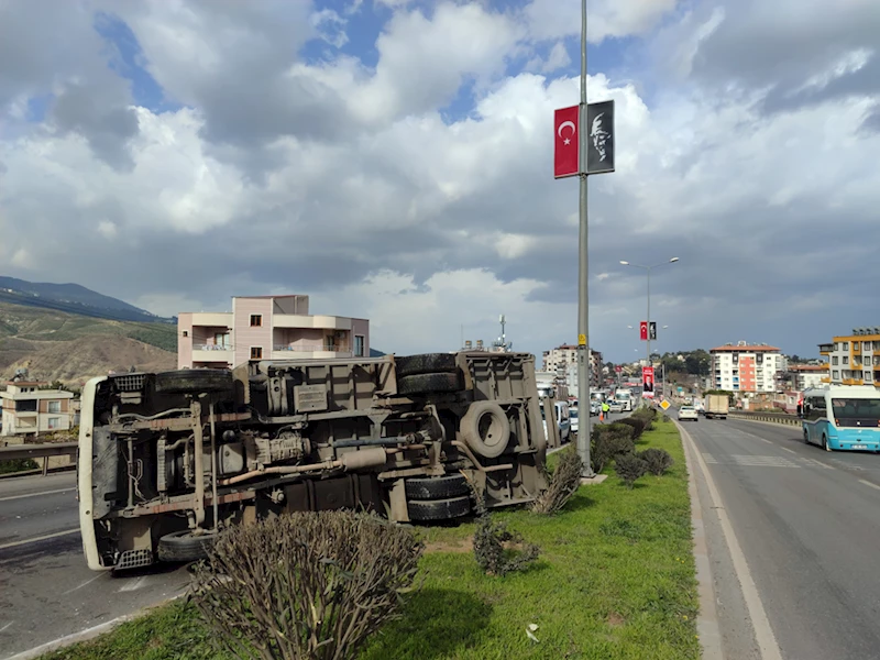 HATAY - Hatay'ın Belen ilçesinde devrilen kamyonun sürücüsü yaralandı.