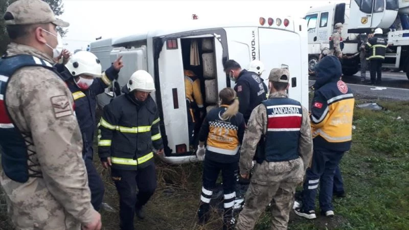 HATAY - Hatay'ın Erzin ilçesinde minibüsün devrilmesi sonucu 3 kişi yaralandı.
