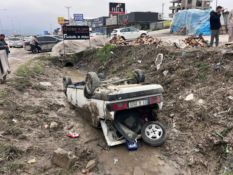 Sürücüsünün ismi öğrenilemeyen 31 N 0505 plakalı otomobil, Antakya-Samandağ kara yolunun Orhanlı mevkisinde devrildi.