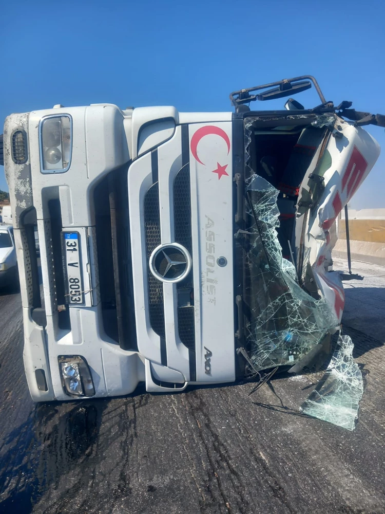 Hatay'da devrilen tırın sürücüsü yaralandı