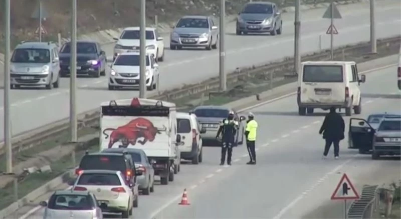 Bazı araç sürücülerinin ekiplerin kontrol noktasına yaklaştıklarında emniyet kemerlerini takmaya çalıştığı anlar drone tarafından görüntülendi.