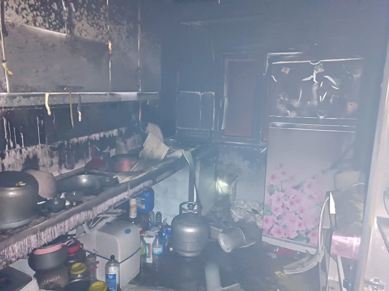 İtfaiye ekiplerinin müdahalesiyle söndürülen yangında evde hasar oluştu.
