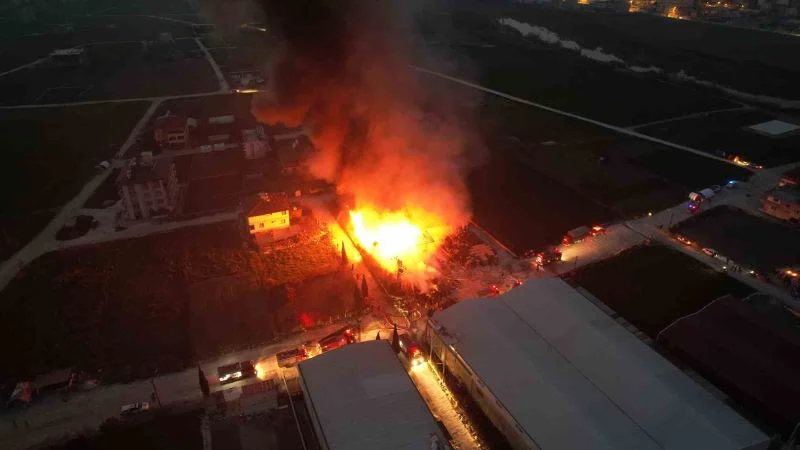 Hatay’da bir fabrikada yangın çıktı. İtfaiye ekiplerinin yangına müdahalesi sürerken, yangın dron ile havadan görüntülendi.