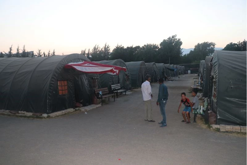 Atakaş Hatayspor'un Osman Çalgın Tesisleri'nde kurulan çadır kentte kalan depremzedeler, takımlarının maçını televizyondan izleyerek destek verdi.