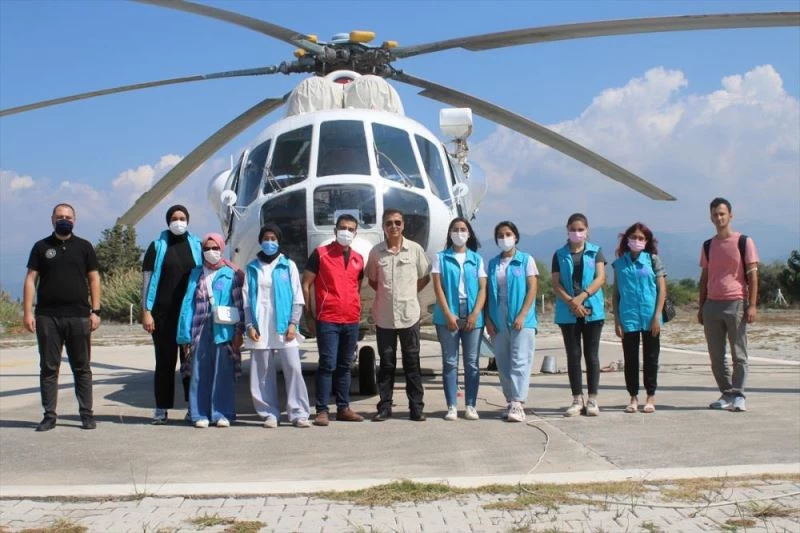 Gençler, daha sonra yangınla mücadelede kullanılan helikopter pistini gezdi.