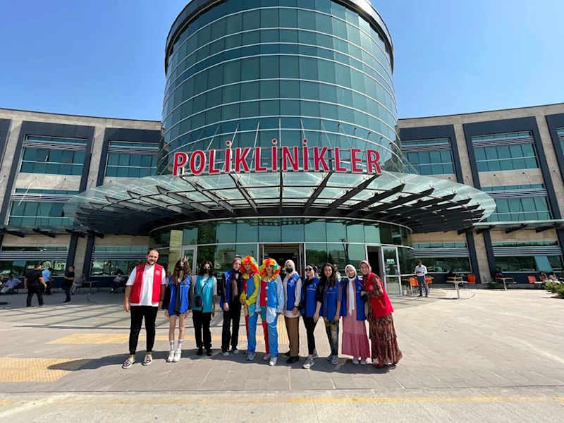Dörtyol Devlet Hastanesi Çocuk Servisi'nde kalan çocukları palyaçolarla birlikte ziyaret eden gönüllü gençler, çocuklarla sohbet ederek onlara çeşitli hediyeler verdi.