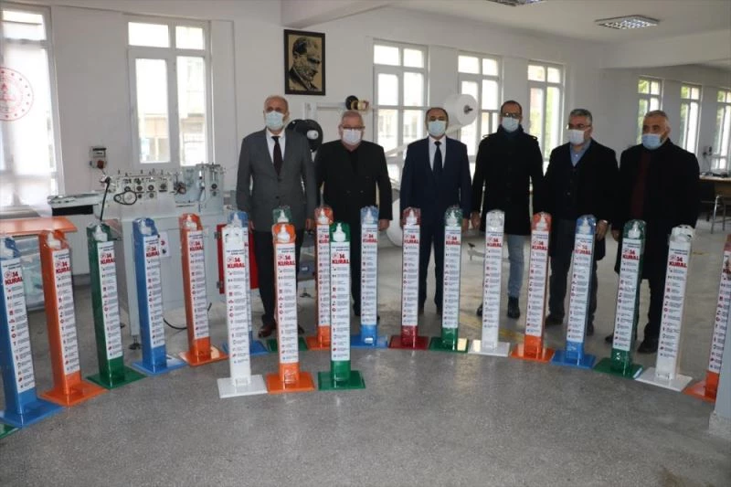Meslek liselerinin her zaman memleketin hizmetinde olacağını ifade eden Sekban, hayırsever Erol Bilecik'in katkılarıyla okulda ürettikleri pedallı dezenfektan ünitelerini il genelinde ihtiyacı bulunan ilk ve orta okullara dağıtmaktan duyduğu mutluluğu dile getirdi.