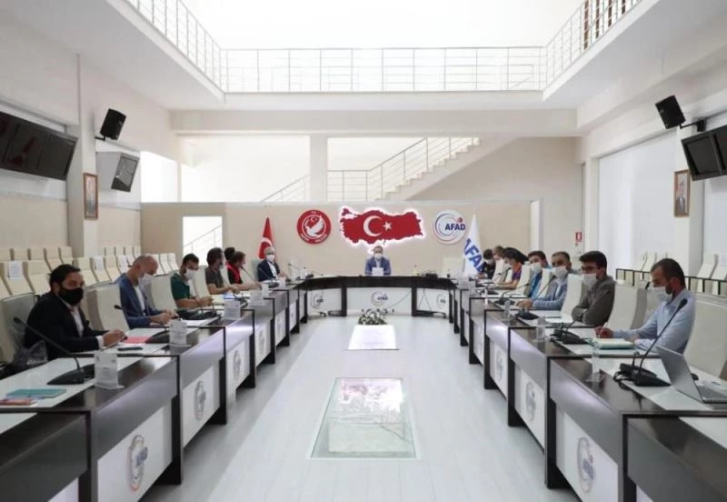 Basina kapali gerçeklesen toplantiya Hatay Valisi Rahmi Dogan, AFAD Baskani Mehmet Güllüoglu, Türk Kizilay ve çesitli yardim kuruluslarinin temsilcileri katildi.