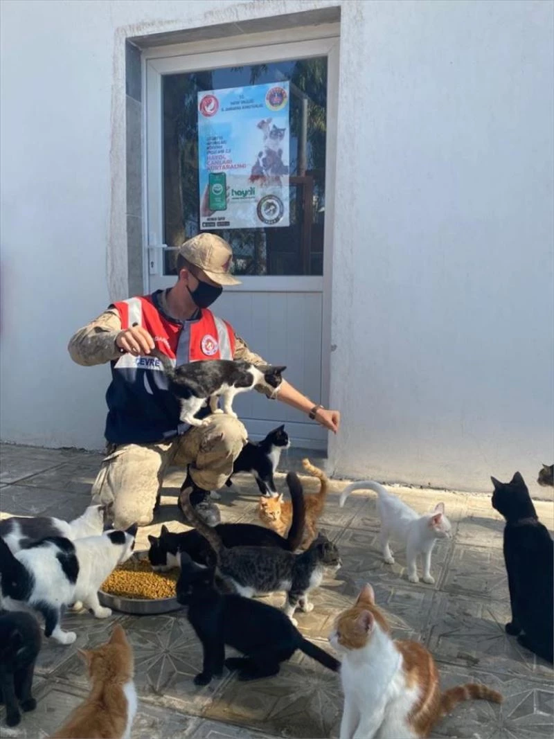 HATAY - Hatay İl Jandarma Komutanlığı ekipleri, sokak hayvanlarına mama ve su desteğinde bulundu.