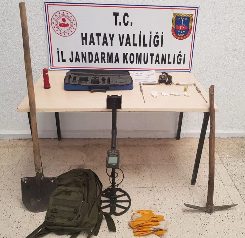 Hatay’ın Arsuz ilçesinde ormanlık bölgede define aramak için kaçak kazı yapan 4 kişi, jandarma ekiplerince suçüstü yakalandı.
