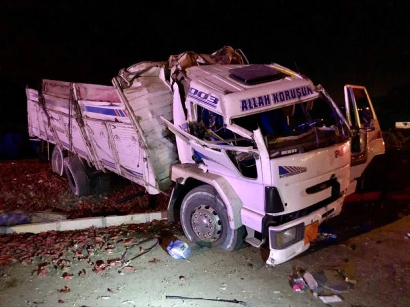 HATAY (AA) - Hatay'da biber yüklü kamyon ile otomobilin çarpistigi kazada araç sürücüleri yaralandi.