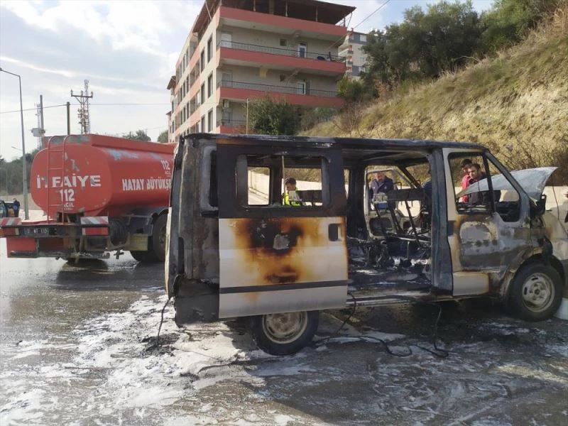 HATAY - Hatay'ın Altınözü ilçesinde, park halindeyken yangın çıkan minibüs kullanılamaz hale geldi.
