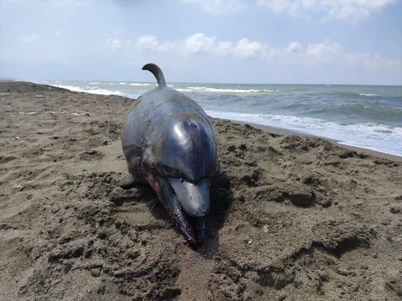 HATAY (AA) - Hatay'in Samandag ilçesinde telef olan yunus kiyiya vurdu.
