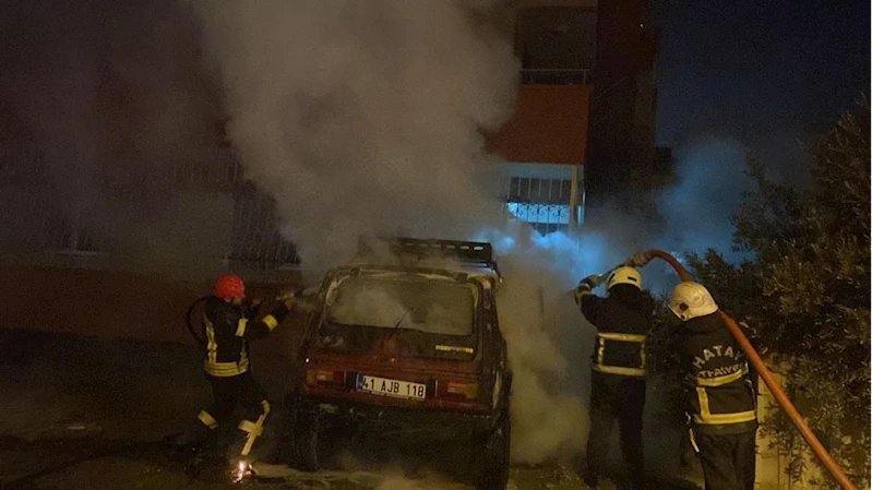HATAY - Hatay'ın Defne ilçesinde, park halindeyken yangın çıkan otomobilde hasar oluştu.
