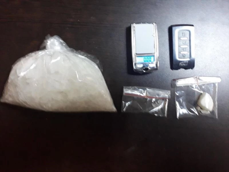Araçta arama yapan ekipler, 3 gram kokain, 145 gram metamfetamin ile anahtarlık görünümlü elektronik hassas terazi ele geçirdi.