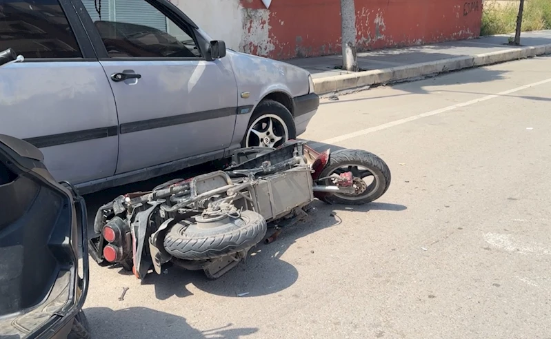 HATAY - Hatay'ın İskenderun ilçesinde, otomobille çarpışan motosikletin sürücüsü hastaneye kaldırıldı.