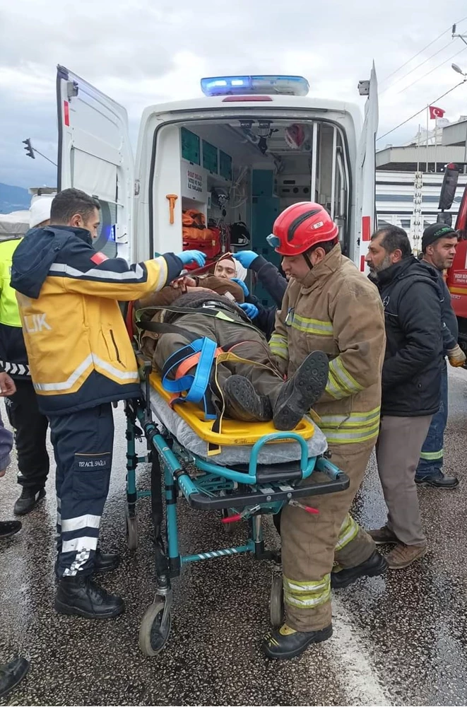 Araçta sıkışan sürücü ve yanındaki kişi itfaiye ekiplerince otomobilden çıkarıldı.