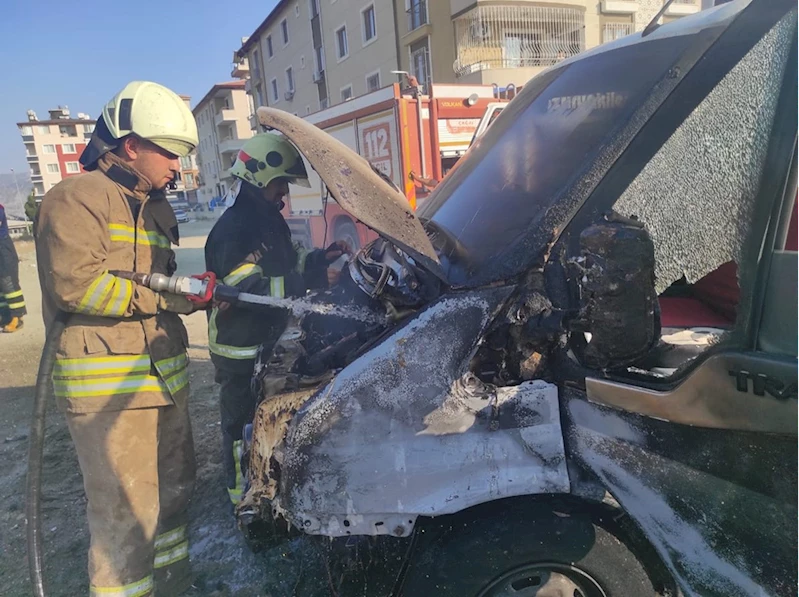 Haraparası Mahallesi'nde park halindeki araç, henüz belirlenemeyen nedenle alev aldı.