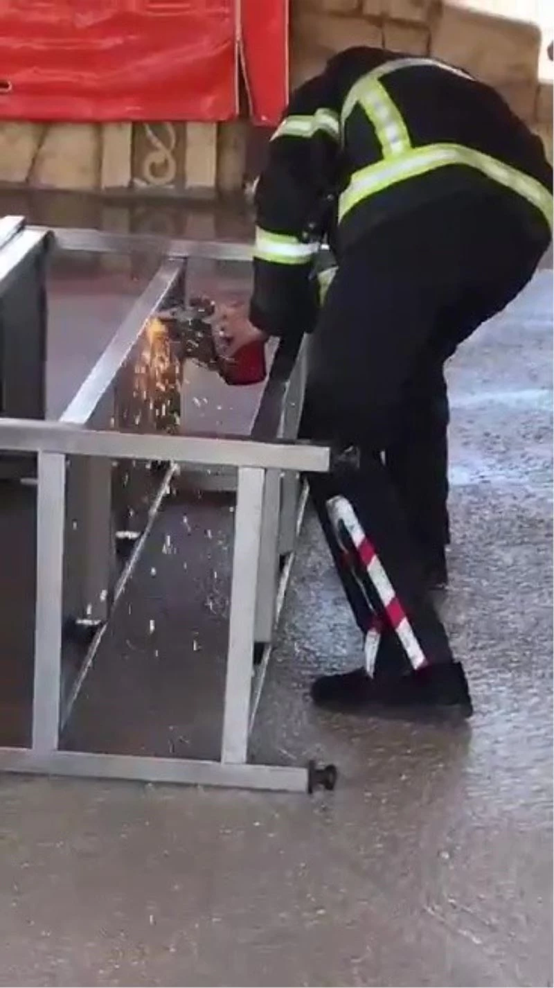 Restoran gelen İtfaiye ekipleri servis rafını keserek yılanın girdiği yerden canlı olarak çıkarttı.