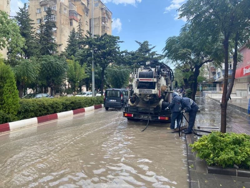 Hatay Büyükşehir Belediyesi ekipleri caddelerde biriken suların tahliyesi için çalışma başlattı.
