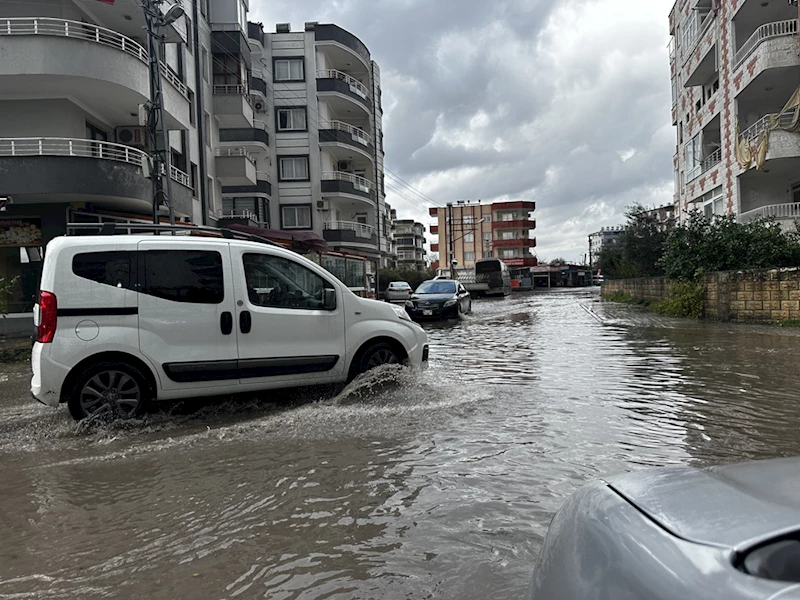 HATAY - Hatay'ın Dörtyol ilçesinde etkili olan sağanak nedeniyle bazı cadde ve sokaklarda su birikintisi oluştu.