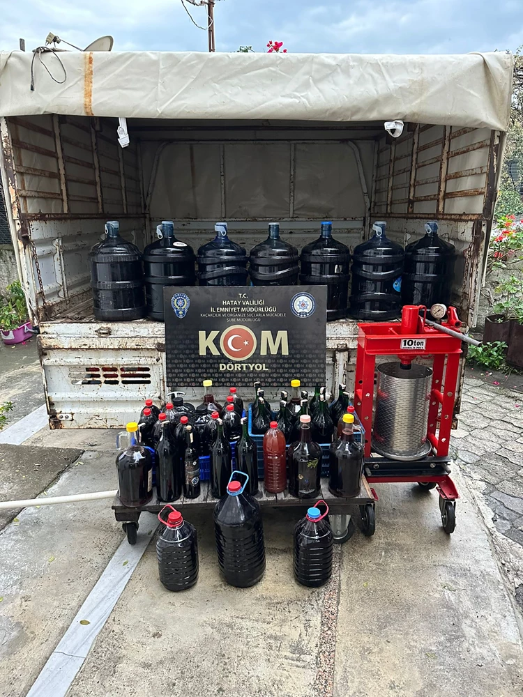 HATAY - Hatay'ın Dörtyol ilçesinde düzenlenen operasyonda 224,5 litre sahte içki ele geçirildi.
