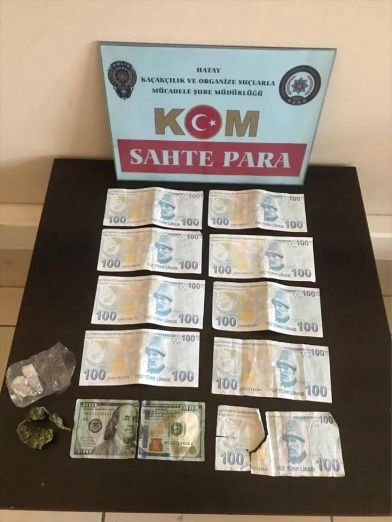 Adreste 9 sahte 100 Türk lirası, 1 sahte 100 dolar ve bir miktar uyuşturucu ele geçirildi.