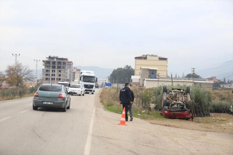 Alınan bilgiye göre, Zekeriya Demirel idaresindeki 07 KDL 74 plakalı otomobil, Hassa-Gaziantep kara yolu Dervişpaşa Mahallesi'nde kontrolden çıkarak şarampole yuvarlandı.