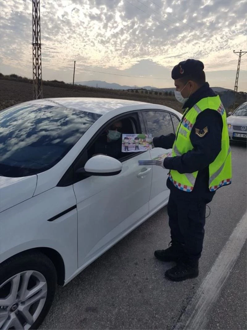 Ilçe Jandarma Komutanligi trafik ekipleri, Enek Kavsagi'nda sürücüleri emniyet kemeri takmalari konusunda uyardi.