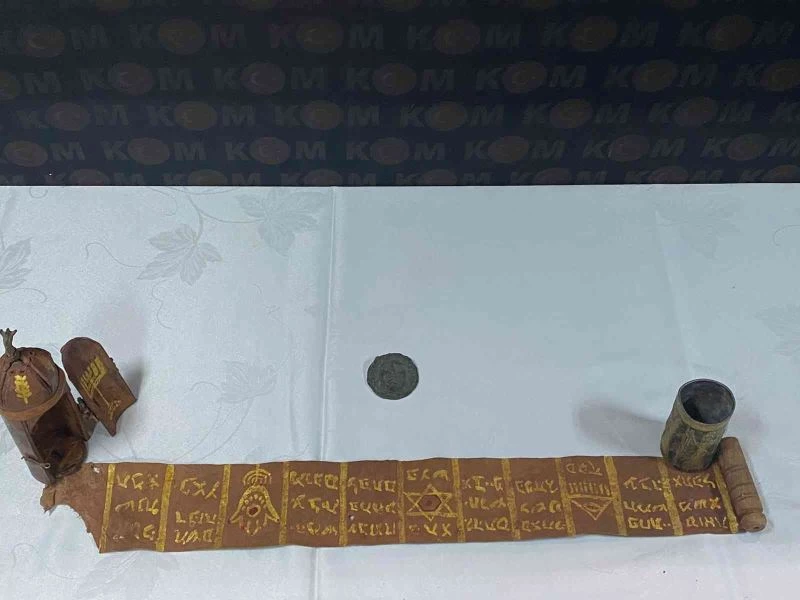 Alınan bilgiye göre, Hatay İl Emniyet Müdürlüğü ekipleri tarafından, tarihi eser kaçakçılığına yönelik yapılan çalışmalar kapsamında İskenderun’da 1 adet İbranice yazılmış Tevrat, 1 adet üzerinde İbranice yazılar bulunan parşömen,1 adet heykelcik,1 adet antik Roma dönemine ait olduğu değerlendirilen bardak, 4 adet farklı boyutlarda obje ele geçirildi.