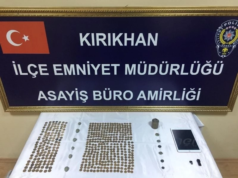 Kırıkhan İlçe Emniyet Müdürlüğü ekipleri de Cumhuriyet Mahallesi’ndeki bir evde 476 sikke, 601 madeni para ve 6 heykelcik buldu. Şüpheliler K.H. ve M.F. gözaltına alındı.