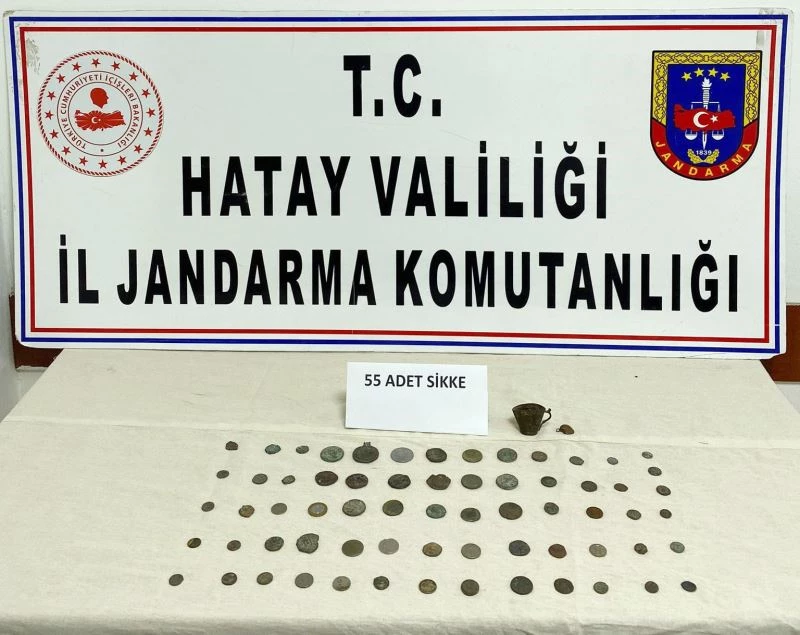 Hatay’ın İskenderun ilçesinde 55 adet sikke ele geçirildi.