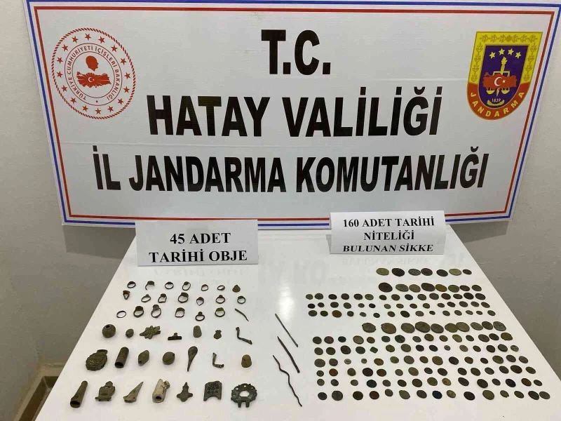 İl Jandarma Komutanlığı kaçakçılıkla mücadele faaliyeti çalışmasında Hassa ilçesi Aktepe Mahallesi’nde ikamet eden A.K. isimli şahsın evinde tarihi eser bulundurduğu ihbarı üzerine, İlçe Jandarma Komutanlığı tarafından ikamette yapılan aramada tarihi eser niteliği taşıdığı değerlendirilen 160 adet sikke ile 45 adet obje ele geçirildi.