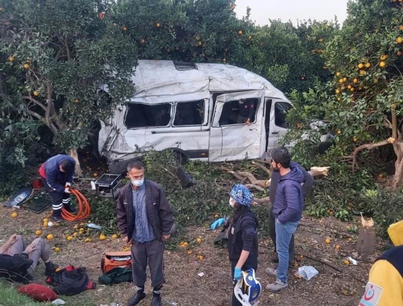 Alinan bilgiye göre, sürücüsü ögrenilemeyen, tarim isçilerini tasiyan 01 ACB 996 plakali minibüs, Erzin-Osmaniye kara yolunda devrildi.