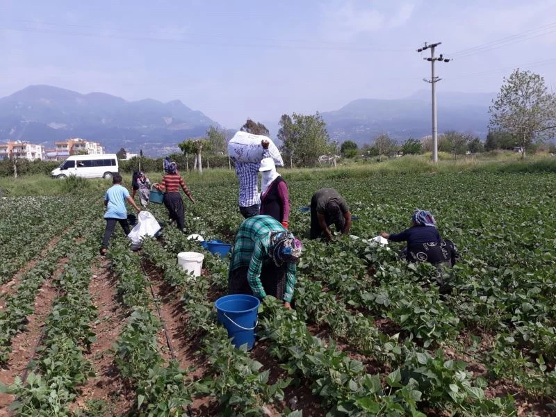 Hatay’ın Payas ilçesinde açık alanda dikimi yapılan fasulyenin hasadına başlandı.
