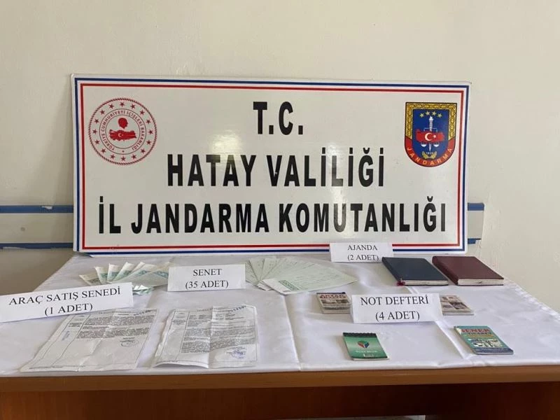 Hassa İlçe Jandarma Komutanlığı ile KOM Şube Müdürlüğü tarafından Hassa ve Kırıkhan ilçelerinde tefecilik yaptığı bilgisi alınan K.A., A.A., Y.Y., B.E., A.Y., A.C. ve E.D. isimli şüphelilerin yakalanması amacıyla 2 Haziran Perşembe günü şüphelilere ait önceden belirlenen 11 farklı adreste eş zamanlı olarak arama yapıldı. Aramada, 4 adet not defteri, 2 adet ajanda 35 adet senet, 1 adet araç satış senedi ele geçirildi.