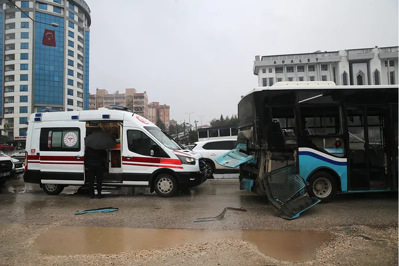 Antakya çevre yolunda önünde, sürücülerinin isimleri öğrenilemeyen 31 AYT 240 plakalı tır, önünde seyreden 31 HO 5535 plakalı otobüse çarptı.