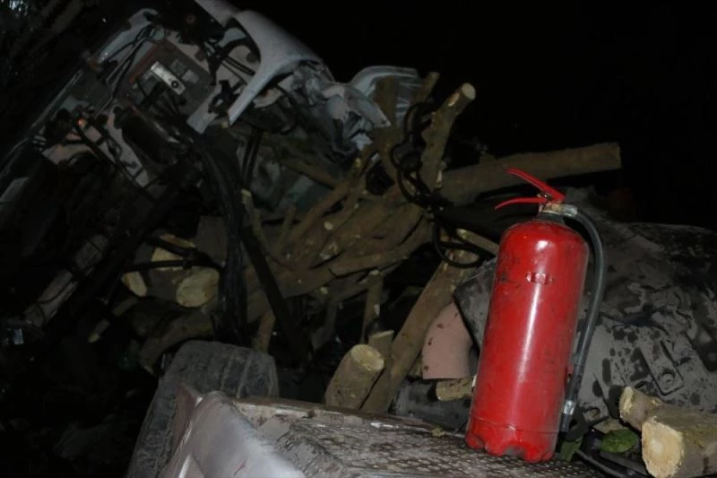 Alınan bilgiye göre, Bedri S. (61) yönetimdeki 33 CFP 49 plakalı tır, D-817 kara yolunda aynı şeritte giden Mehmet İ. (42) idaresindeki iki römorklu 80 LK 302 plakalı narenciye odunu yüklü traktöre çarptı.